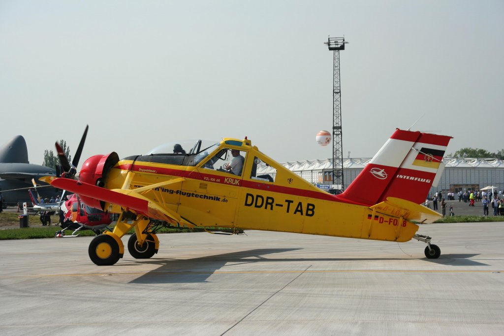 Gehling Flugtechnik PZL-106 AR Kruk D-FOAB bei der Ankunft auf der ILA in Berlin-Schönefeld am 10.06.2010