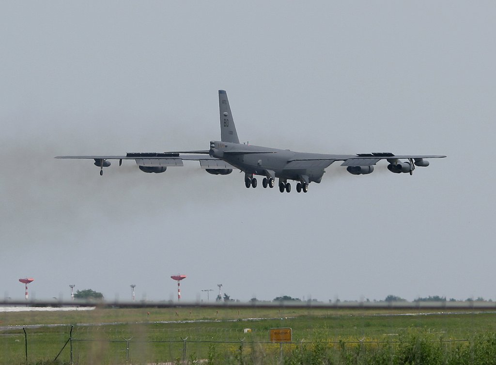 USA Air Force Boeing B-52H Stratofortress 61-0008 beim Überflug zur ILA in Berlin-Schönefeld am 06.06.2010.