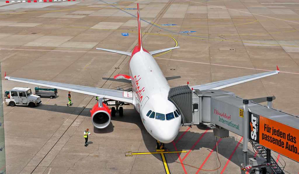 A 319-112 der Air Berlin, D-ABGR, am "Gate" in Düsseldorf - 07.06.2010