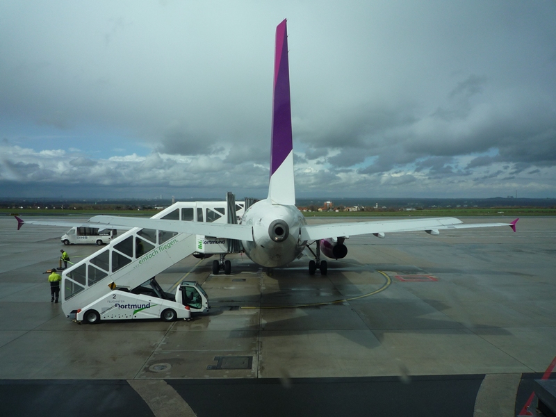 Wizz Air A 320-232 auf der Parkposition am Dortmunder Flughafen.