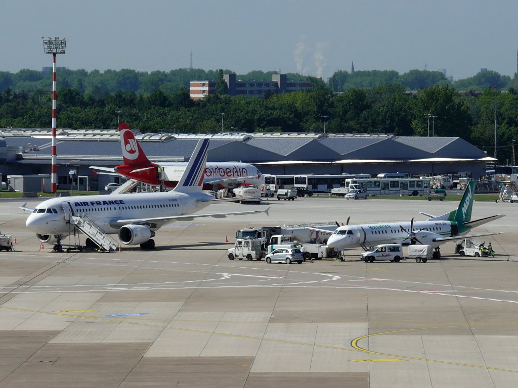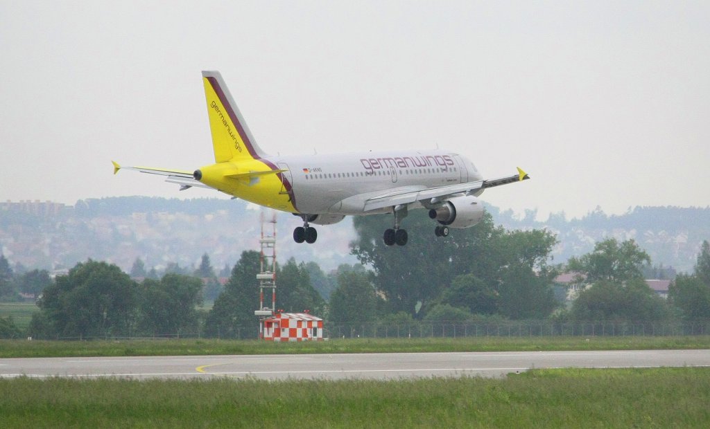 Landung eines Airbus A319-100 der Germanwings auf dem Stuttgarter Flughafen am 2. Juni 2010