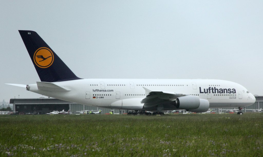 Landung des ersten Airbus A380-800 der Lufthansa auf dem Baden-Airpark am 31.05.10
