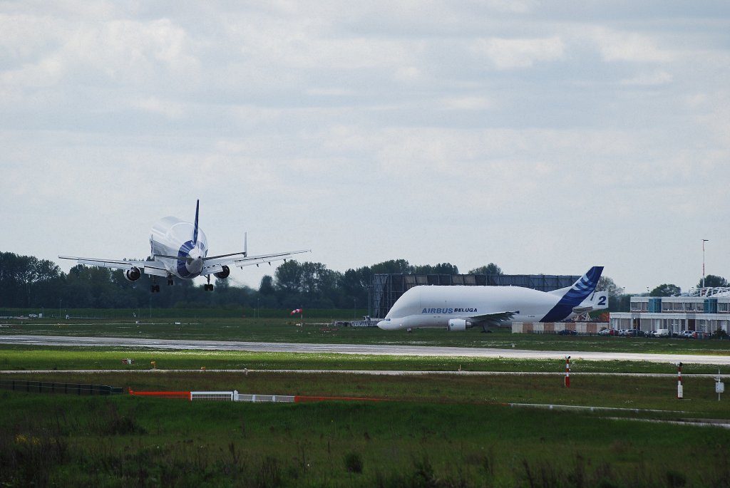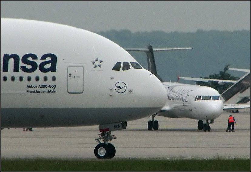 Größenvergleich I: die Höhe des Seitenleitwerks einer Boing 737 entspricht gerade der Rumpfhöhe der A380. 02.06.2010 (Matthias).