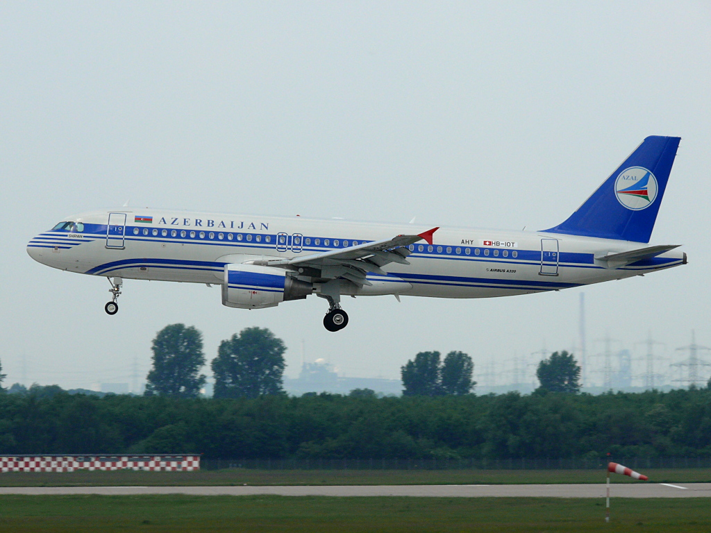 Azerbaijan mit vorl. Reg: HB-IOT; Airbus 320. Flughafen Düsseldorf. 28.05.2010.