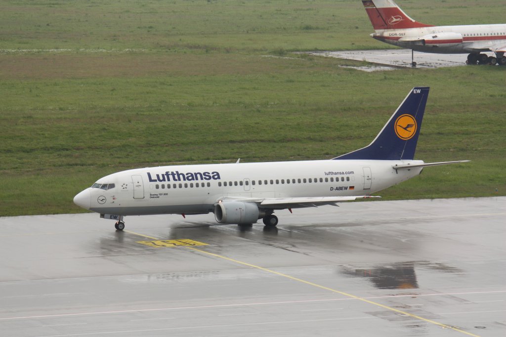 Boeing 737-300 der Lufthansa, Kennung D-ABEW, getauft auf den Namen "Detmold" in Leipzig/Halle. Fotografiert am 01.06.2010.
