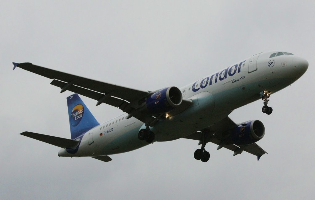 Condor-Airbus A320-200 bei der Landung in Stuttgart am 02.06.10