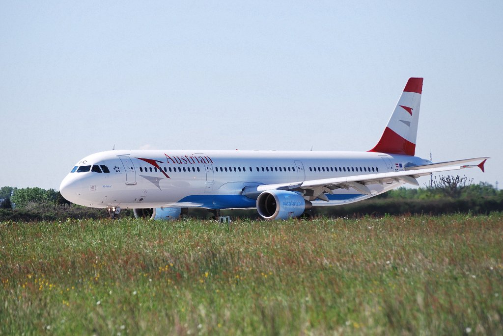 Der Airbus A321 OE-LBC Südtirol der Austrian beim Start in Hamburg Fuhlsbüttel am 03.06.10