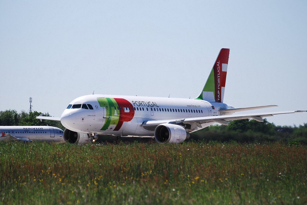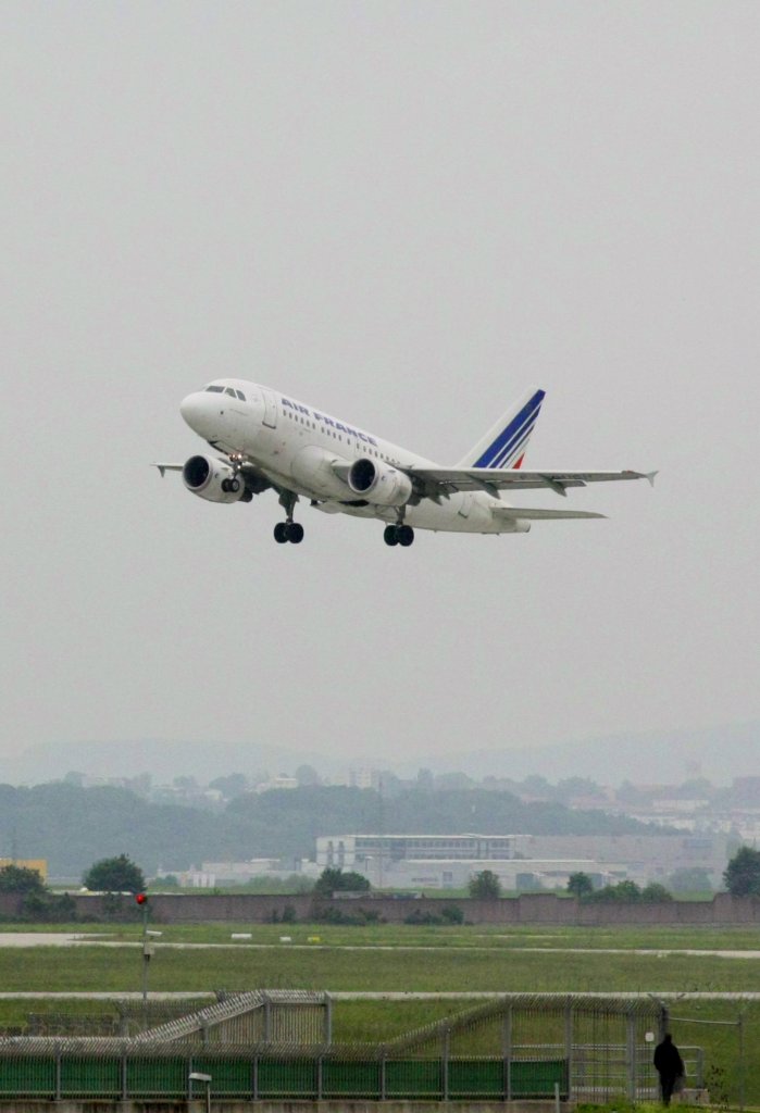 Start eines Air France-Airbus A318 auf dem Stuttgarter Flughafen am 02.06.10