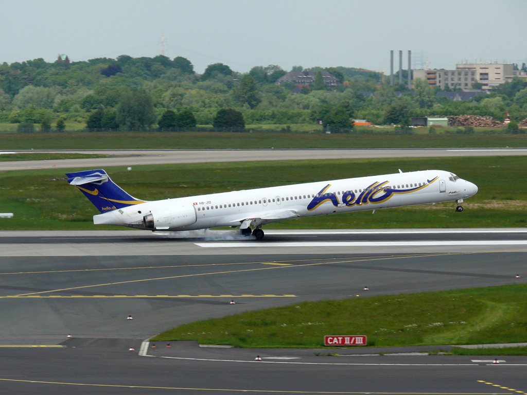 Hello; HB-JID; McDonnell Douglas MD-90. Flughafen Düsseldorf. 02.06.2010.