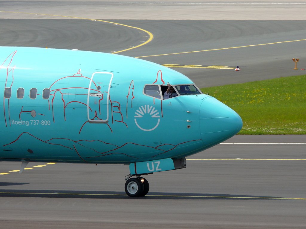 Immer wieder die winkenden Co-Piloten in Düsseldorf :-) Sun Express "Istanbul"; TC-SUZ; Boeing 737-8HX. 28.05.2010.