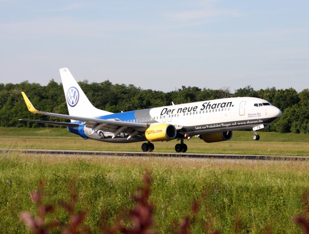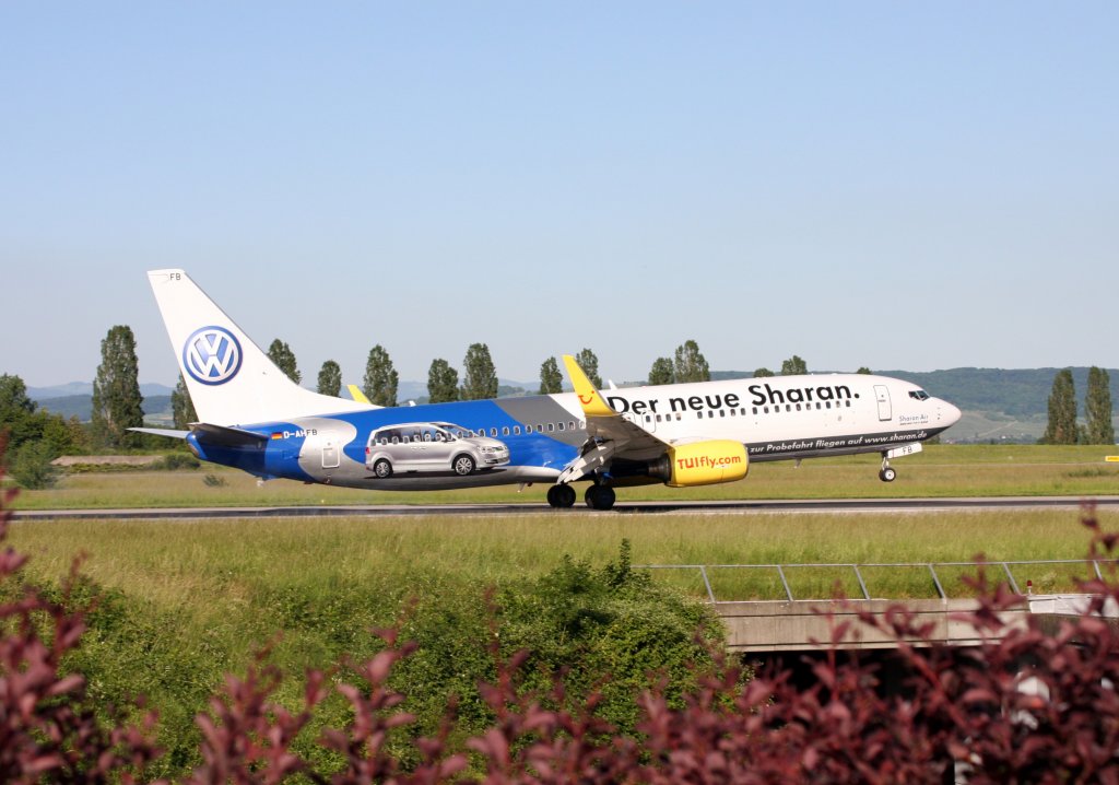 Reg.: D-AHFB Hersteller: BOEING Typ: 737-8K5/W Serien Nr.: 27982 Baujahr: 1997 Erstflug: 15.08.1997 fliegt in der Sonderlackierung von VW der neue Sharan als Sharan Air aufgenommen am 05.06.2010 auf dem EuroAirport Basel-Mühlhausen-Freiburg