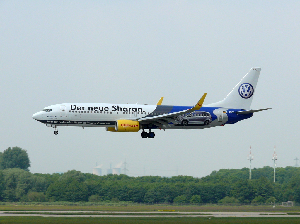 TUIfly "Der neue Sharan"; D-AHFB; Boeing 737-8K5. Flughafen Düsseldorf. 28.05.2010.