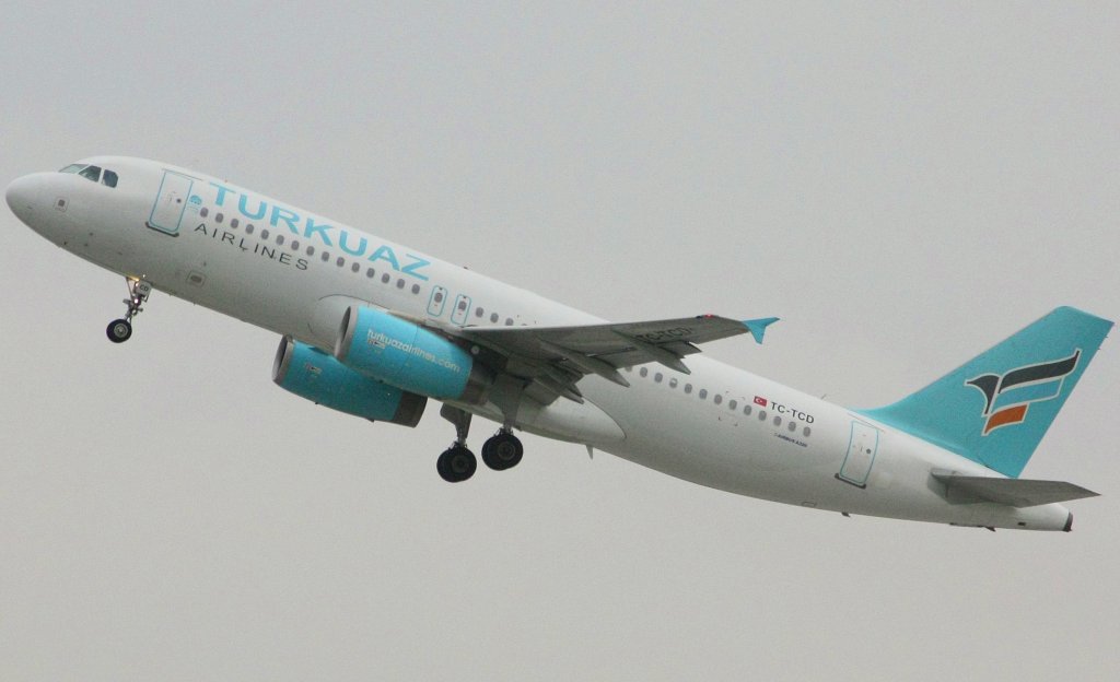 Ein Turkuaz Airlines-Airbus A320-232 steigt in Stuttgart am 02.06.10