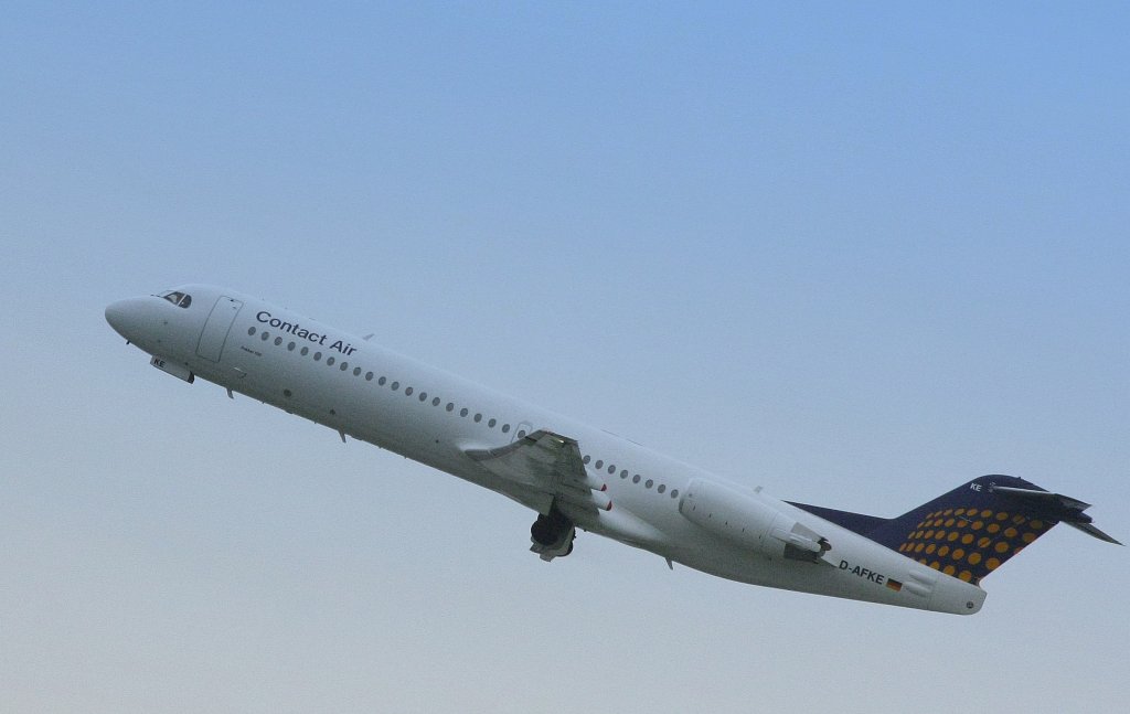Eine Contact Air-Fokker 100 steigt in Stuttgart am 02.06.10