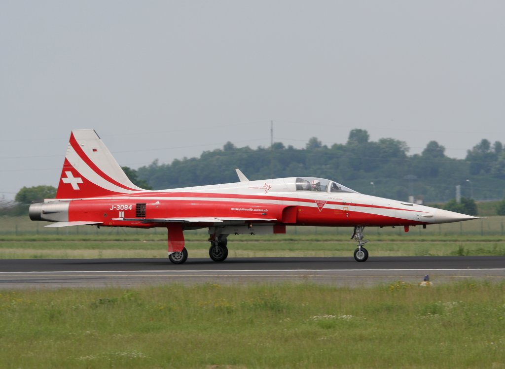 Patrouille Suisse F-5E Tiger II J-3084 bei der Landung nach der Flugvorführung auf der ILA 2010 in Berlin-Schönefeld am 08.06.2010