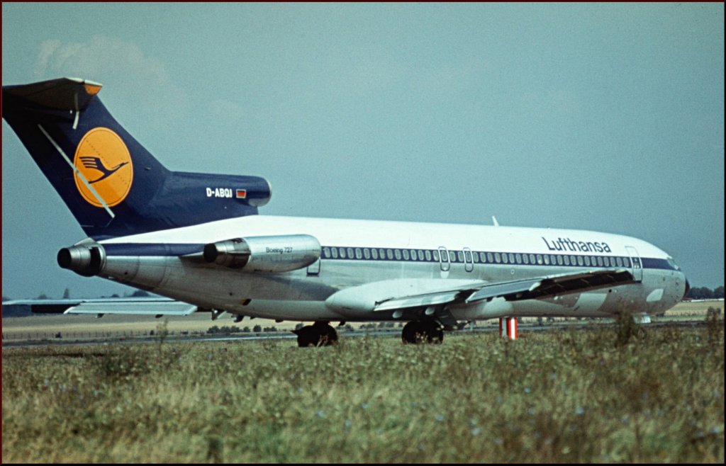 Boeing 727 der Lufthansa zur Leipziger Messe auf dem Flughafen Leipzig Halle ca 1987 Scann vom Dia