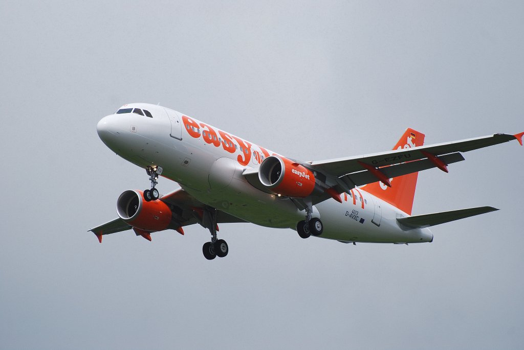 Der Easyjet Airbus A319 mit der Werkskennung D-AVXC im Endanflug auf Airbus Finkenwerder am 18.05.10