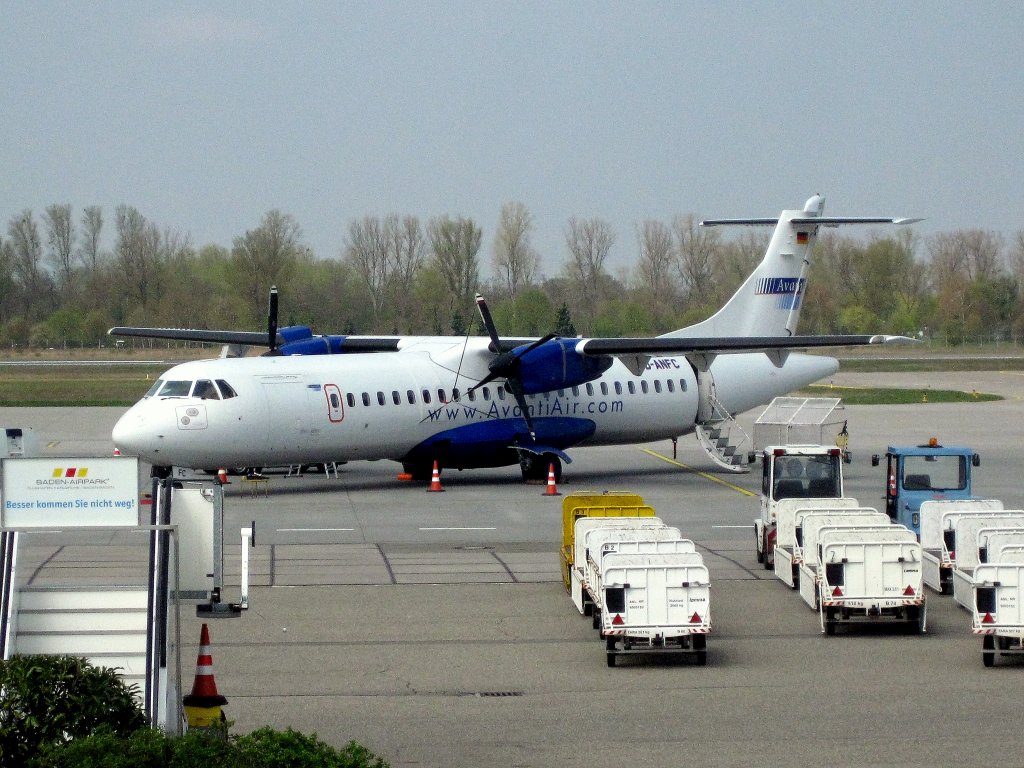 Das Flugzeug ist eine Aerospatiale ATR 42-500 der Avanti Air