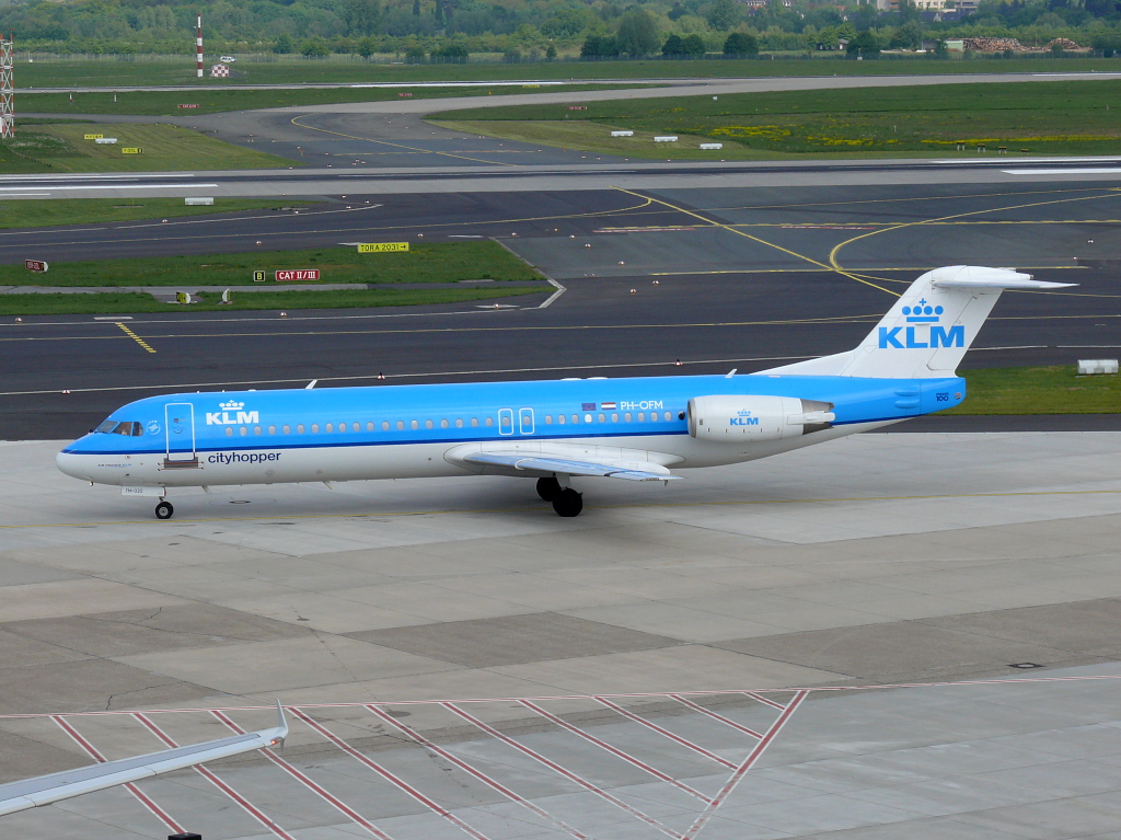 KLM cityhopper; PH-OFM; Fokker F-100. Flughafen Düsseldorf. 15.05.2010.