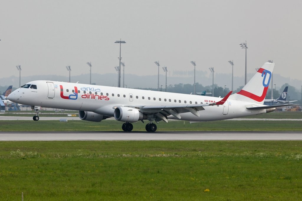 Landung Embraer195/Arkia Airlines/München/MUC/22.05.2010.