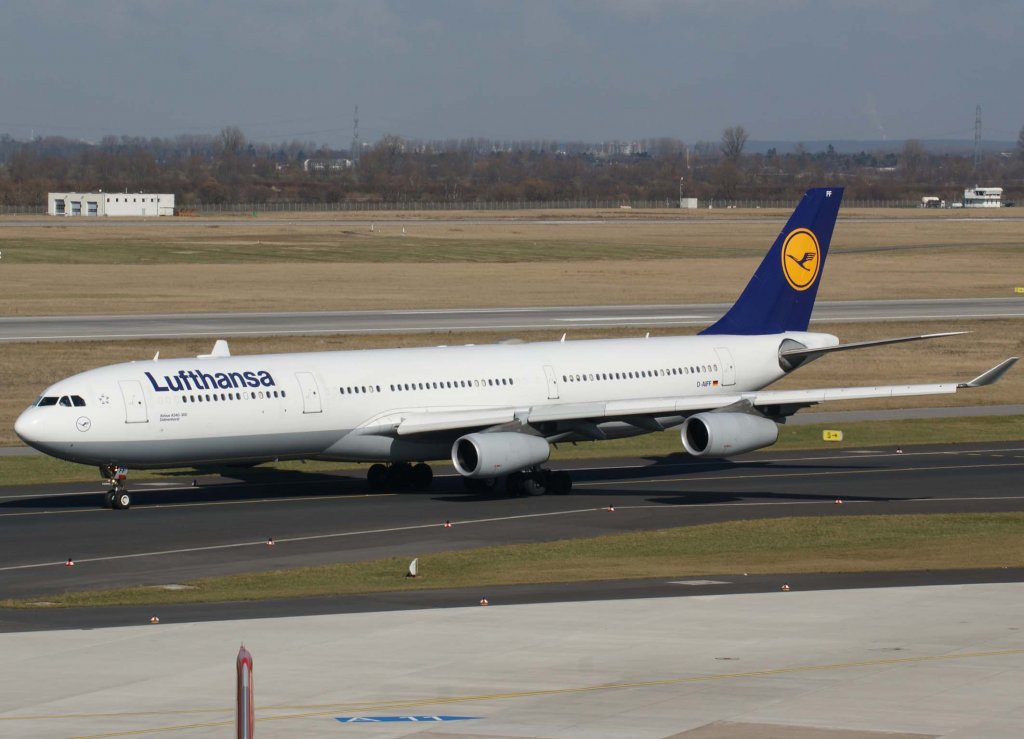 Lufthansa, D-AIFF, Airbus A 340-300 (Delmenhorst), 2010.03.03, DUS, Düsseldorf, Germany