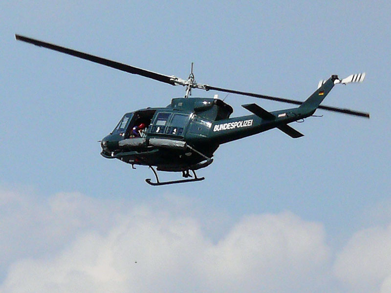 Nachschuss auf einen Hubschrauber (Typ …?) der Bundespolizei bei einer Übung an der Elbe bei Hoopte (1); 17.05.2010