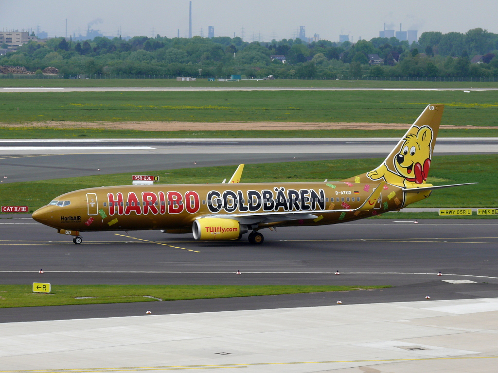 TUIfly "Haribo gold"; D-ATUD; Boeing 737-8K5. Flughafen Düsseldorf. 15.05.2010.