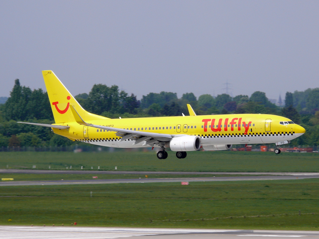 TUIfly "Haribo blau"; D-AHFM; Boeing 737-8K5. Flughafen Düsseldorf. 15.05.2010.