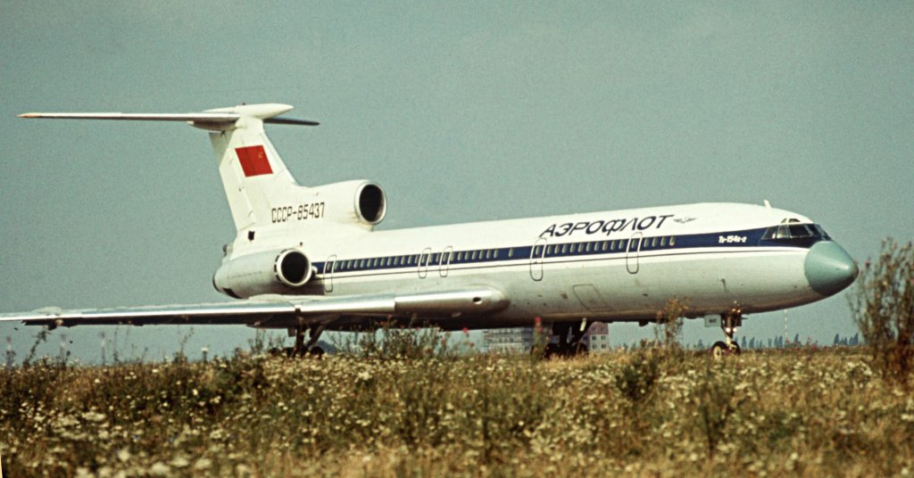 Tupolew Tu 154 B2 zur Leipziger Messe auf dem Flughafen Leipzig Halle ca 1987 Scann vom Dia