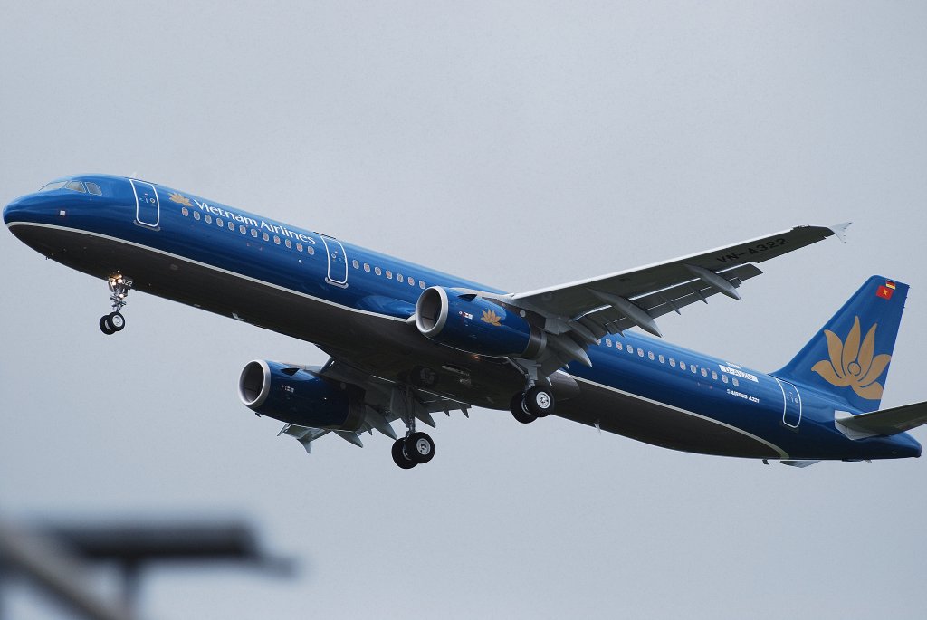 Vietnam Airlines Airbus A321 mit der Werkskennung D-AVZU im Landeanflug auf das Airbuswerk Hamburg Finkenwerder am 18.05.10 aufgenommen von Teufelsbrück.