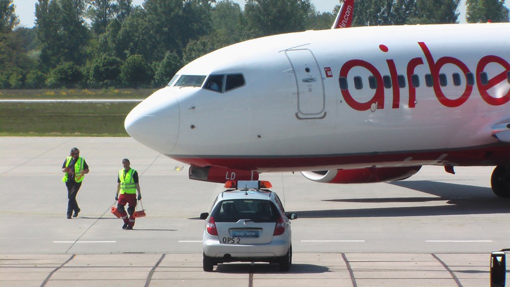 Gleich hebt diese Boeing 737-700 der Air Berlin mit der Kennung D-ABLD ab nach Palma de Mallorca mit der Flugnummer AB 9652.
