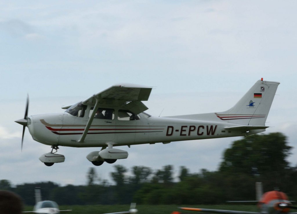 Eine Cessna 172 ist im Endanflug auf den Baden-Airpark