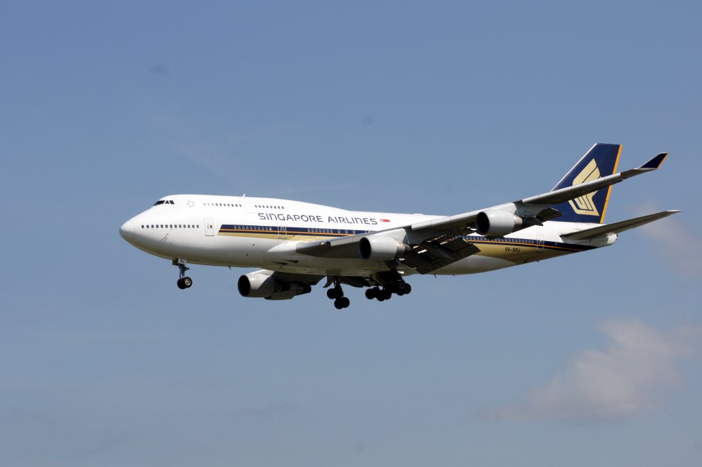 Eine Boeing 747-412 von Singapore Airlines mit der Kennung 9V-SPJ aufgenommen am 22.05.2010 auf dem Flughafen Frankfurt am Main