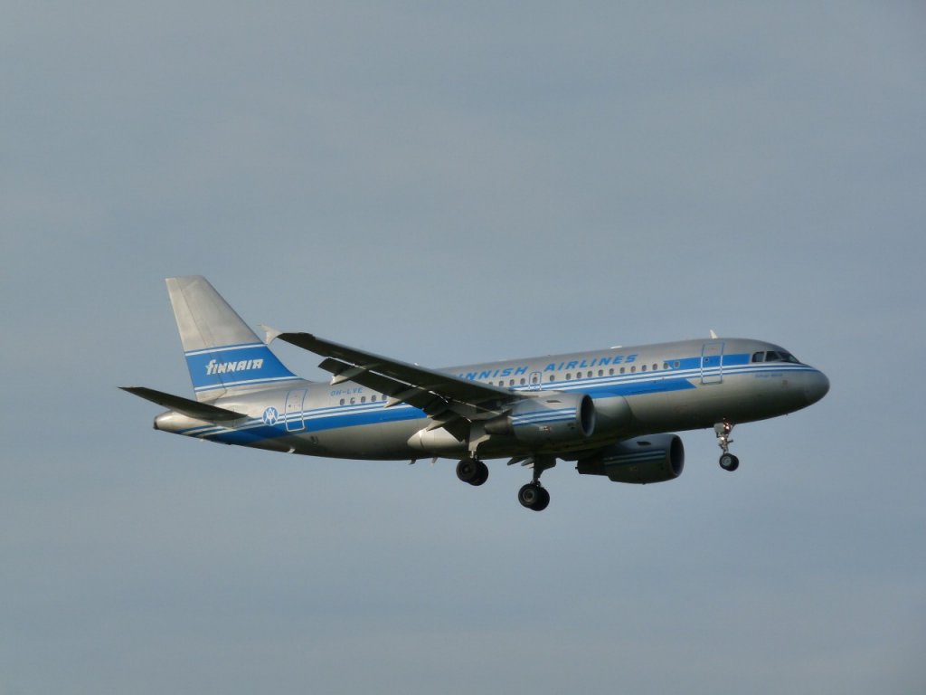 Finnair A 319-112 mit Retro-Lackierung "Silverbird" am 25.5.10 in Zürich.