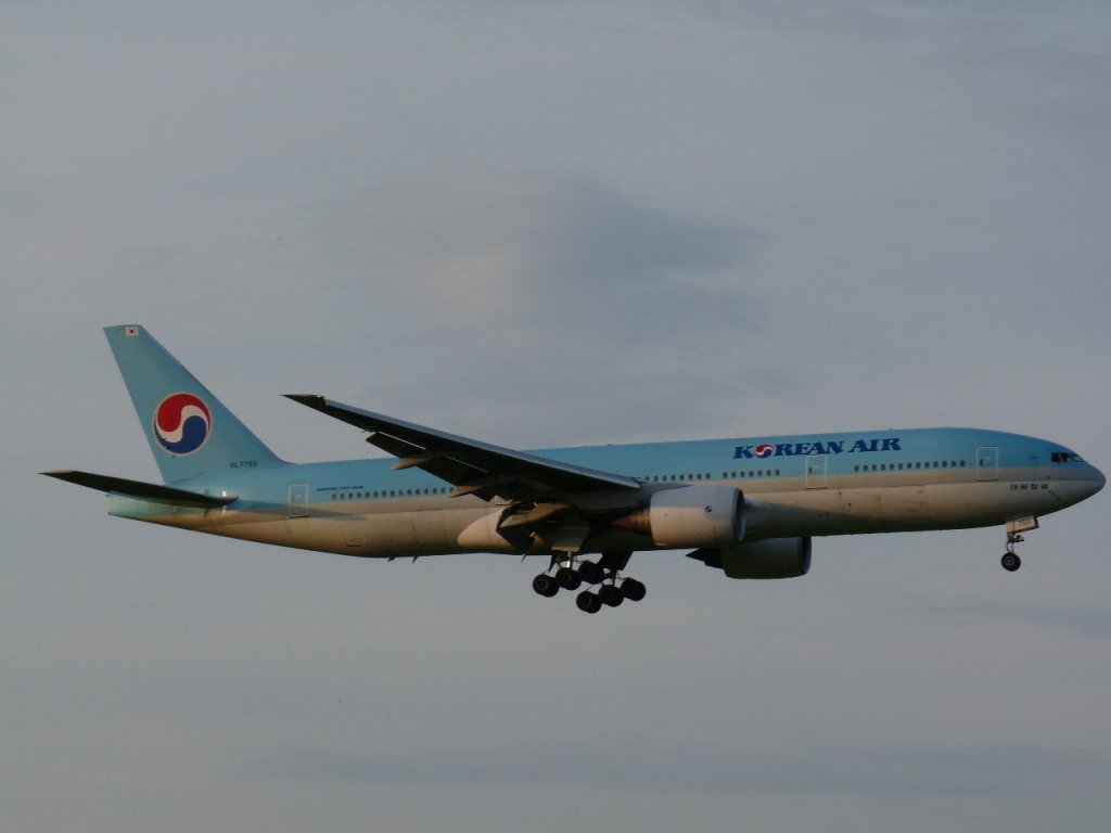 Korean Air Boeing 777-2B5(ER) im Anflug auf Piste 14 am Abend des 25.5.10.