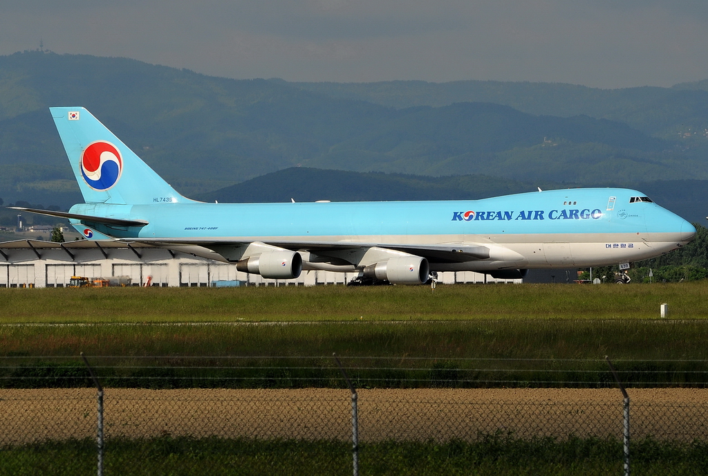 Korean Air Cargo, HL7439, Boeing 747-4B5F/ER/SCD. Nach der Bilderbuchlandung rollt der Jumbo zum Hangar. 23.5.2010