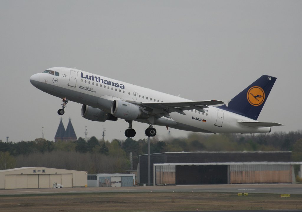 Lufthansa A 319-114 D-AILB "Wittenberg/Lutherstadt" beim Start in Berlin-Tegel am 24.04.2010