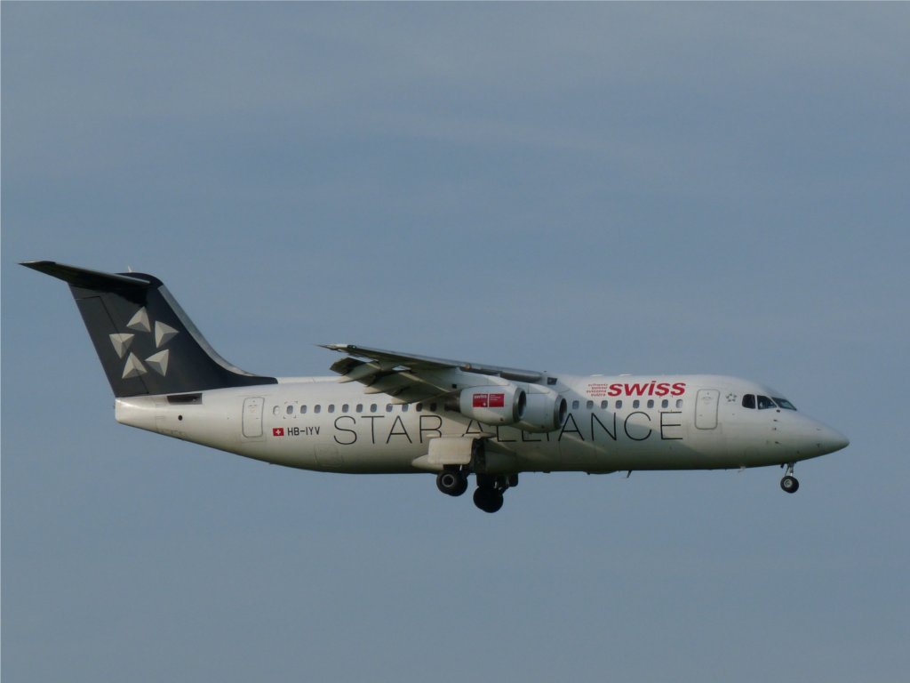 Swiss Avro Regional Jet RJ100 mit "STAR ALLIANCE" Lackierung im Anflug auf Zürich-Kloten am 25.5.10.