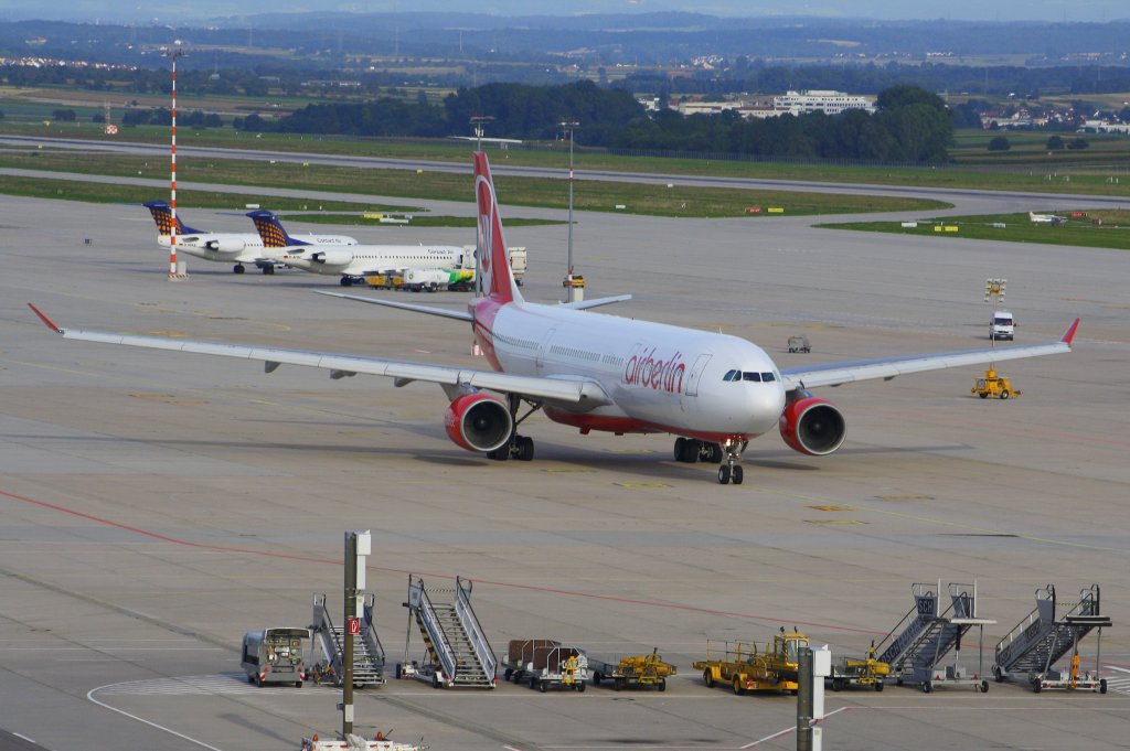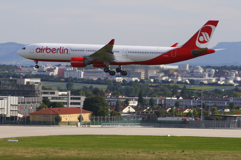Ein Air Berlin-Airbus A330-300 mit der Zulassung D-AERS landet in Stuttgart am 6. September 2010