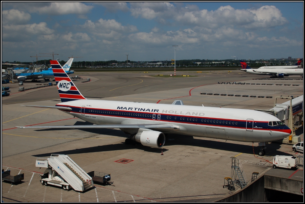 Boeing 767-300ER PH-MCL (Koningin Beatrix) von Martinair in Retro-Lackierung stand am 16. Juni 2010 auf dem Flughafen Schiphol/Amsterdam.