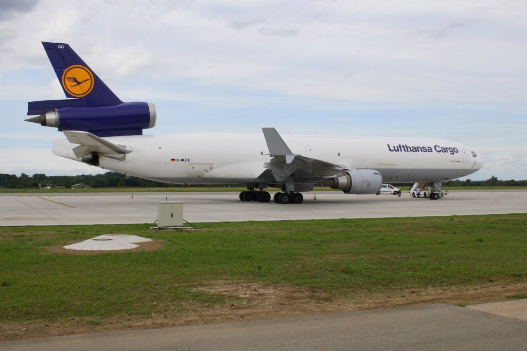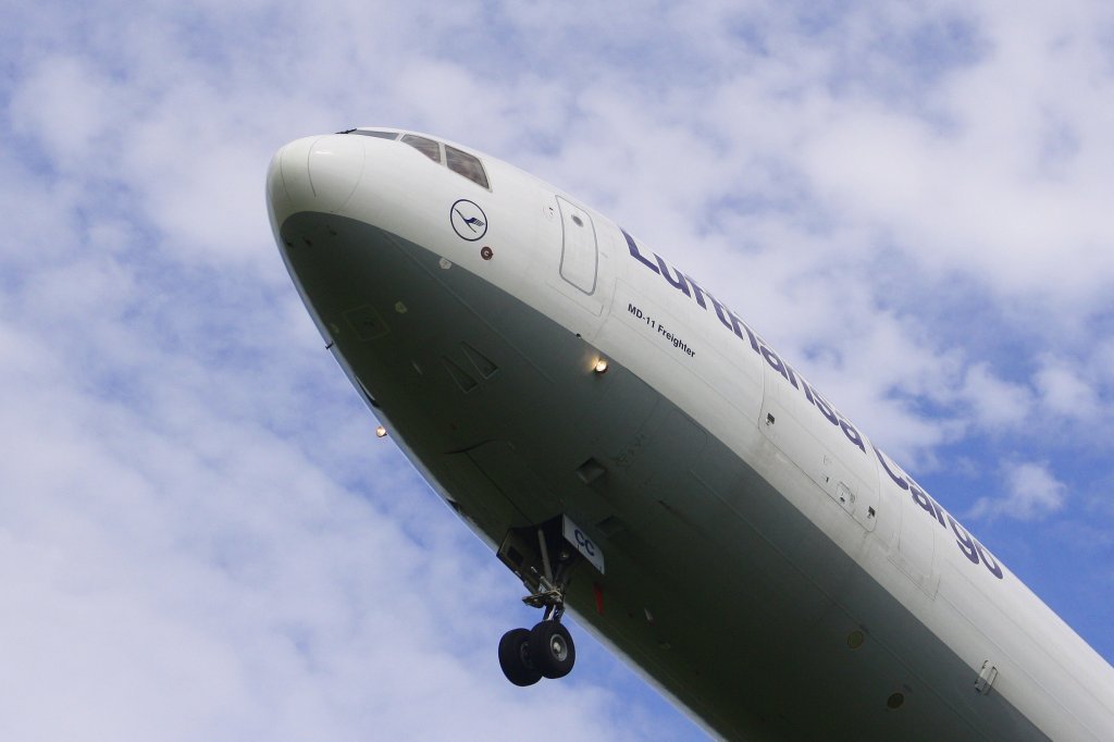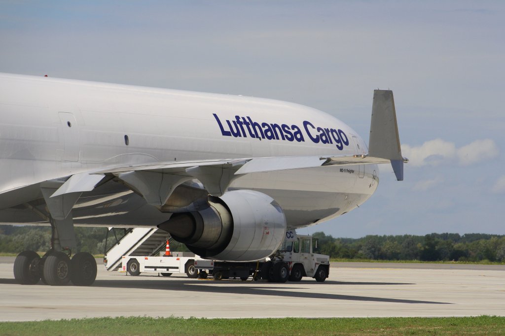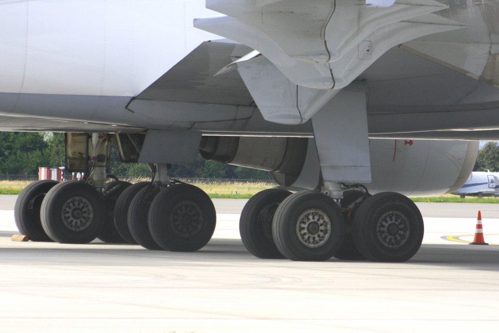Die Hauptfahrwerke einer Mc-Donnell Douglas(Boeing)MD-11F der Lufthansa Cargo (Baden-Airpark am 26.08.10)