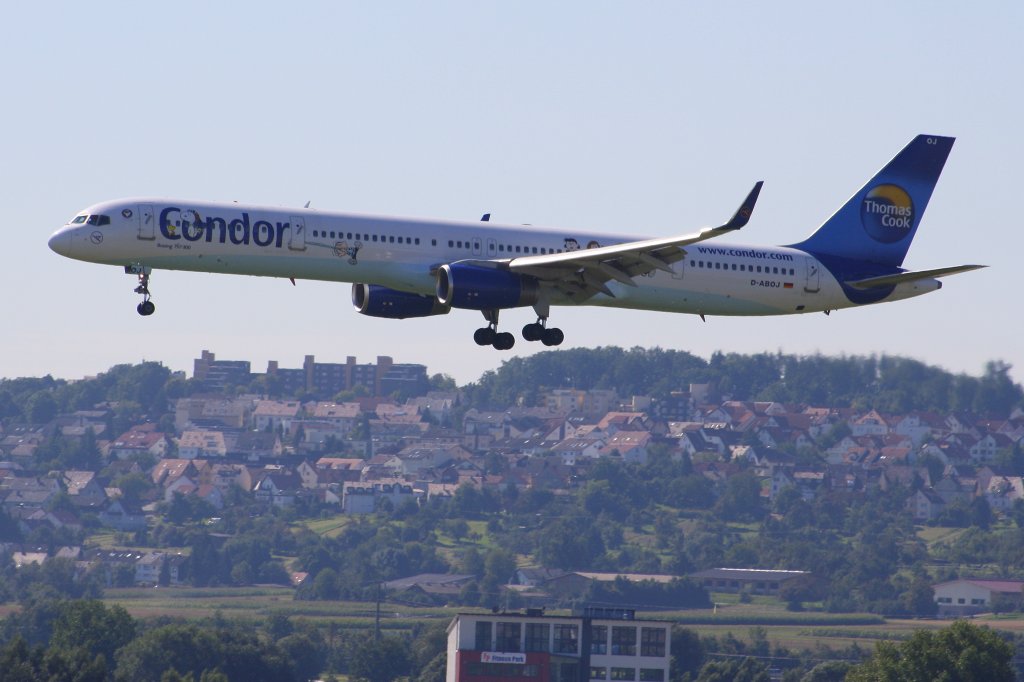 Eine Condor-Boeing 757-300 (Zulassung D-ABOJ) landet in Stuttgart am 6. September 2010
