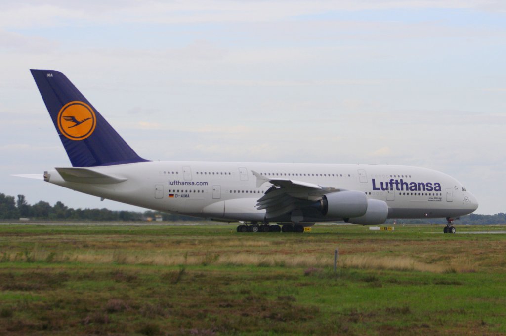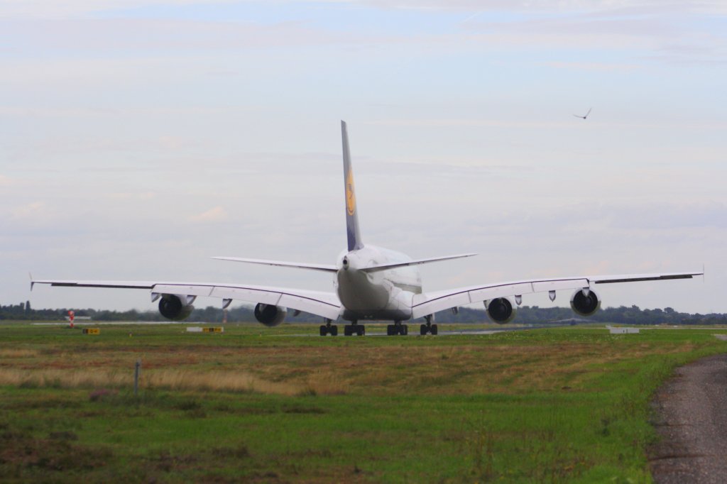 Start des Airbus A380-800 der Lufthansa vom Baden-Airpark am 25.08.2010