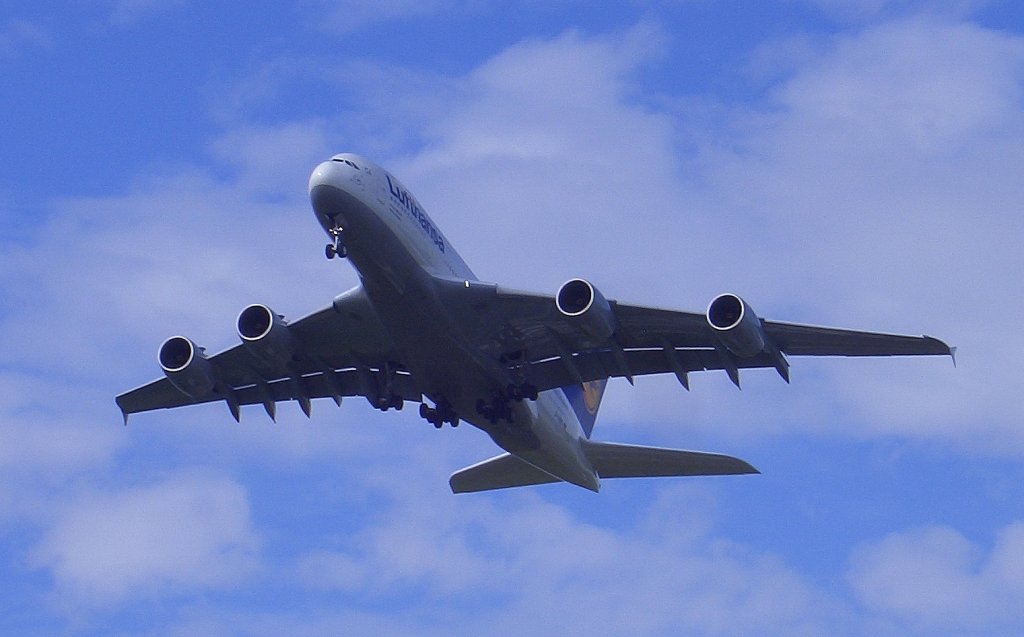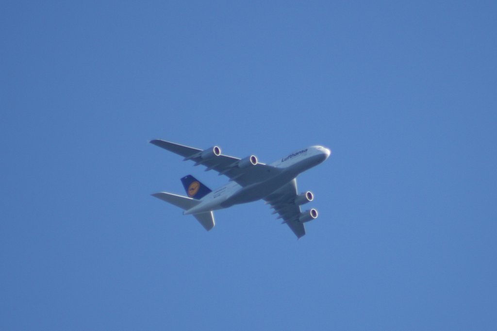 Überflug des neuen A380 der Lufthansa über Karlsruhe am 28.08.2010