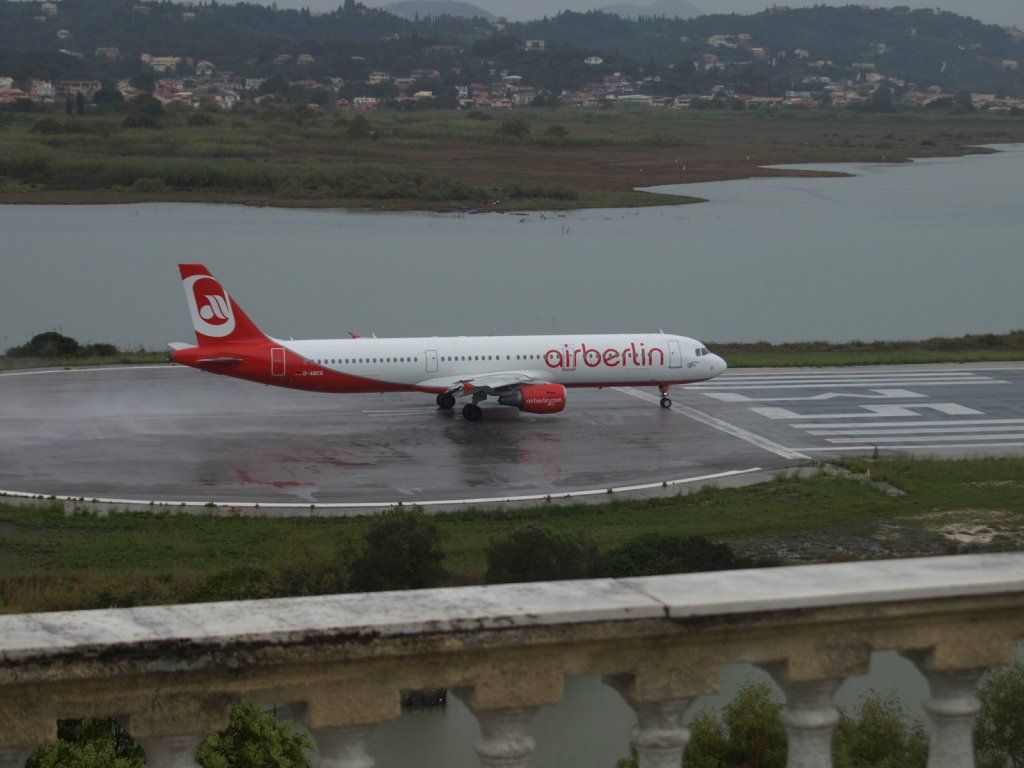 Air Berlin, D-ABCG Airbus A 321-200 wartet in Korfu auf die Freigabe zum Start