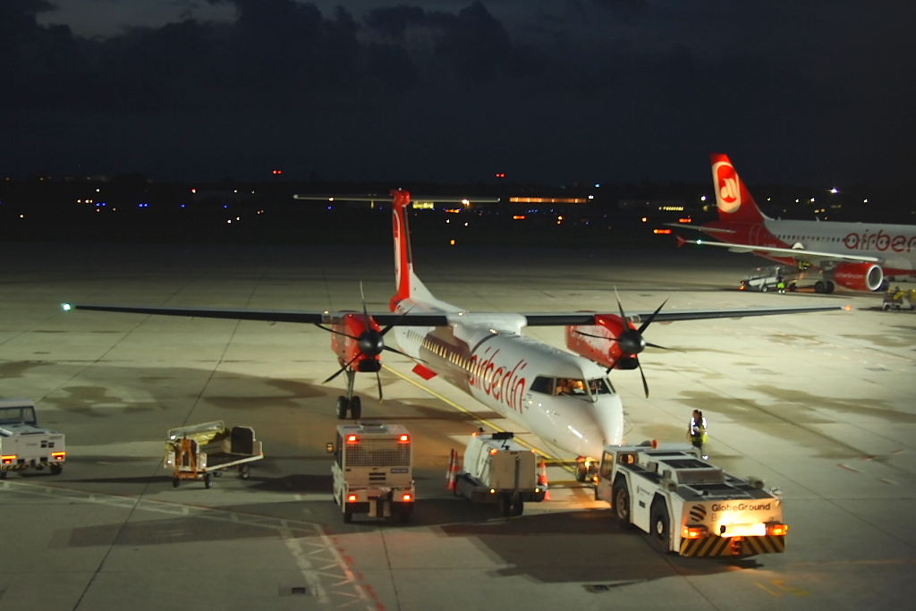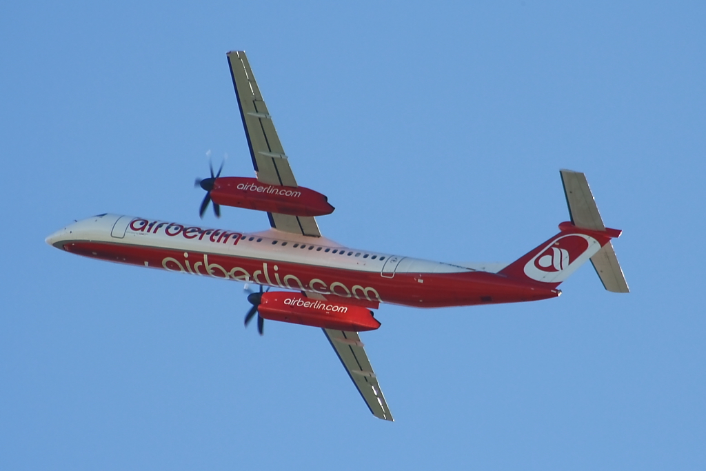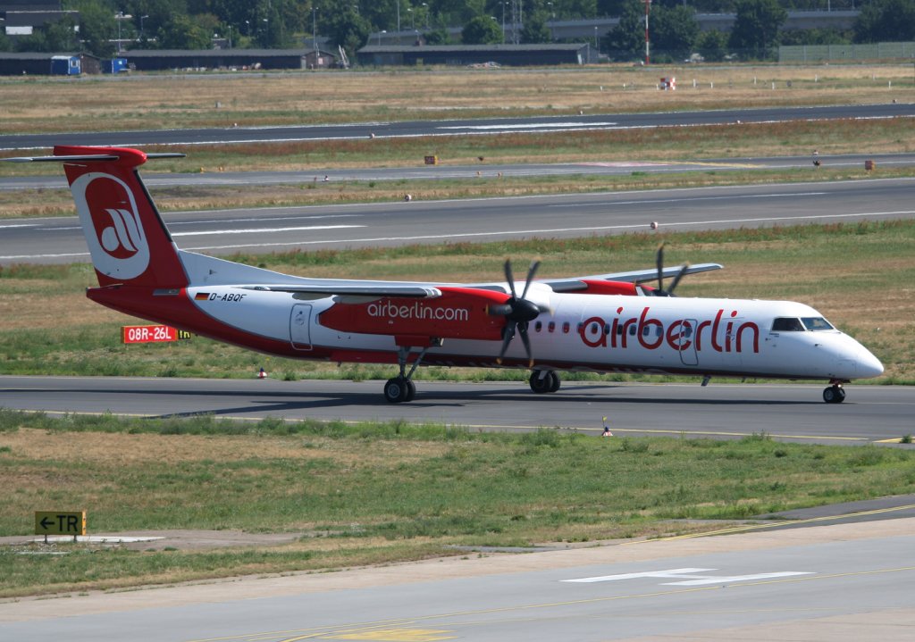 Air Berlin De Havilland Canada DHC-8-402Q D-ABQF bei der Ankunft in Berlin-Tegel am 31.07.2010