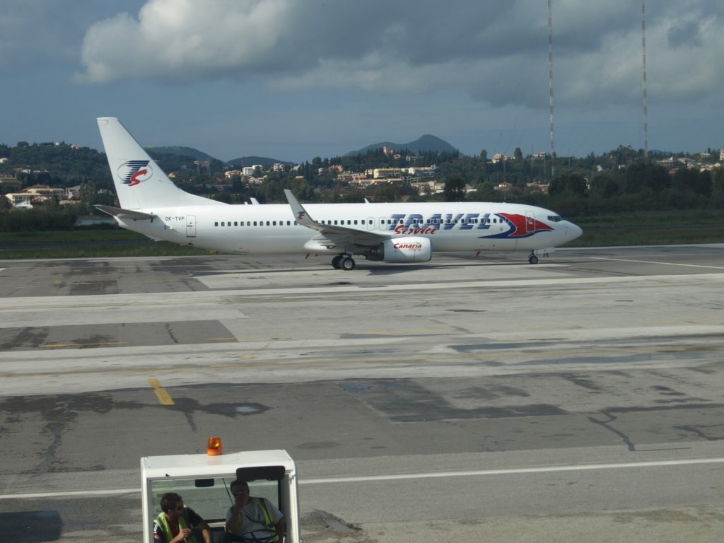 Boeing 737-800 der tschech. TravelService in Korfu augen. 16.10.2010