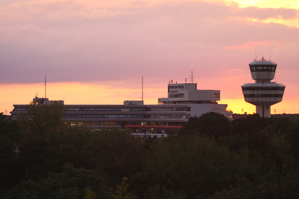Der Flughafen Berlin-Tegel mit dem Tower im Abendrot (16.08.10)