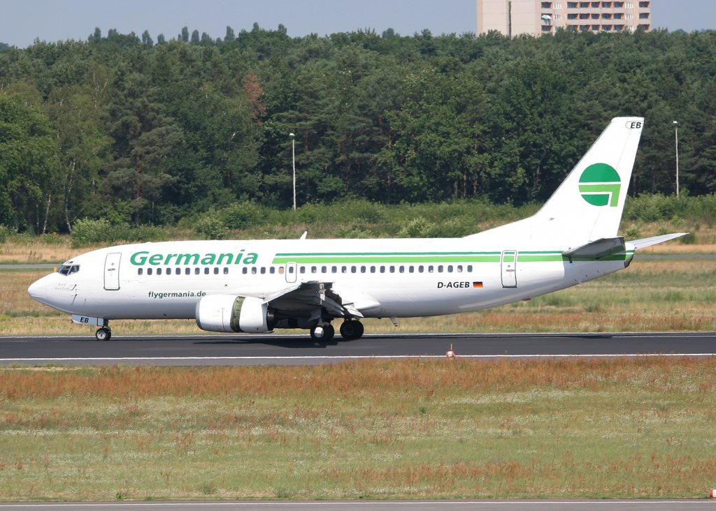 Germania B 737-322 D-AGEB nach der Landung in Berlin-Tegel am 31.07.2010
