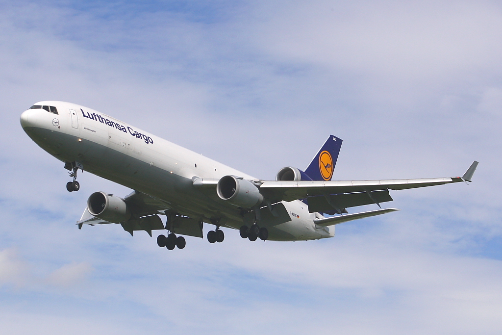 AeroLogic Flugzeug im Anflug auf den Flughafen Leipzig/Halle, über Mersebug; 07.09.2010